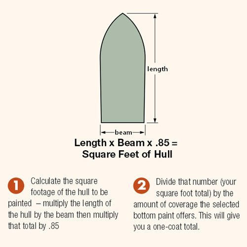 - Calculate the square footage of the hull to be painted - multiply the length of the hull by the beam then multiply that total by .85